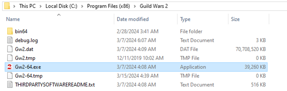 - Suche die „Gw2-64.exe“