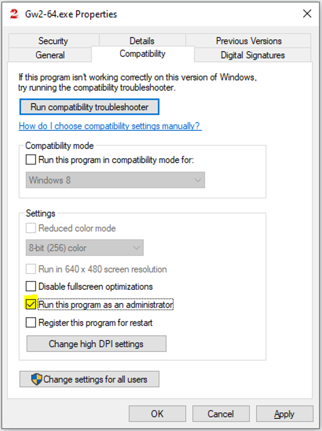 - Navigiere zur Registerkarte „Kompatibilität“ > aktiviere „Dieses Programm als Administrator ausführen“.