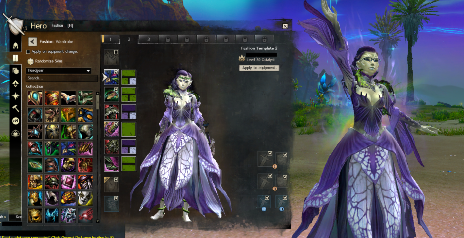 • Inspect: This option will open a small preview window showing the skins and dyes used in the selected Fashion Template and an additional button to copy the Fashion Template.